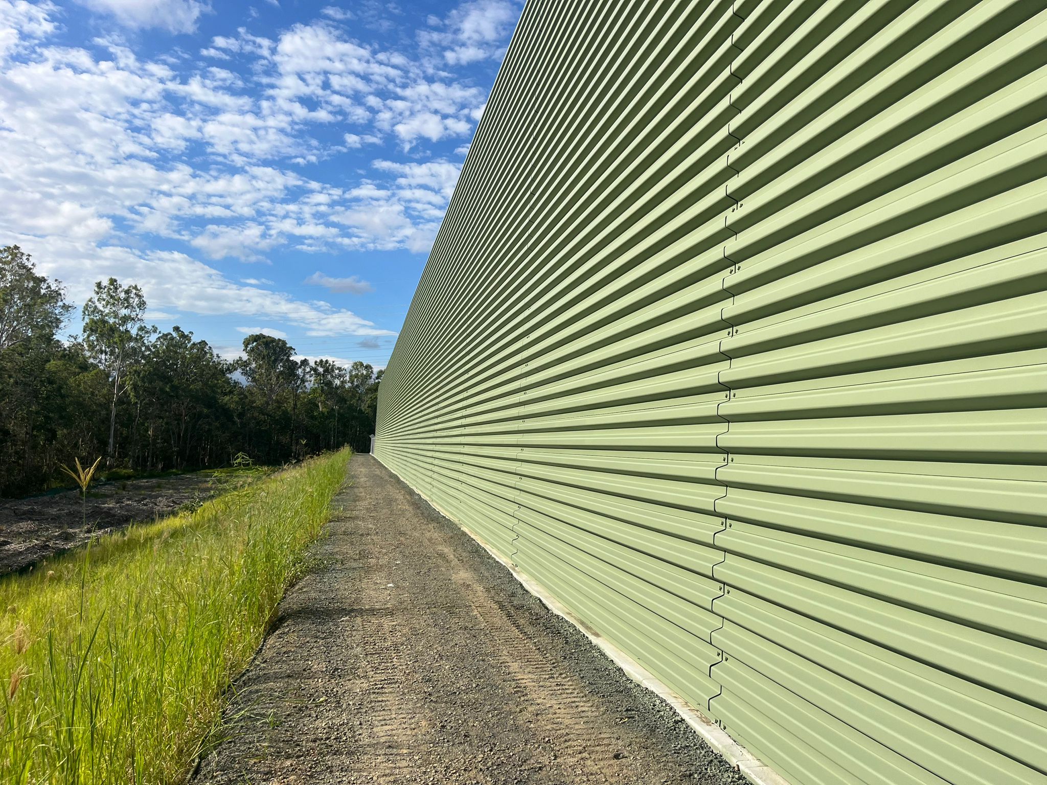 Wallmark designed, constructed and certified a steel noise wall for the Greenbank BESS project in Queensland to reduce noise for nearby residents. The 220-metre long noise barrier was constructed using galvanised and zinc painted steel panels at heights between 7.5-8.5 metres, using 2.95 millimetres thick and 38 kilograms per square metre. The project was delivered as a design and construct package with Consolidated Power Projects Australia under Wallmark’s ISO 9001, ISO 45001 and ISO 14001 accredited systems. The wall provides a dedicated barrier to reduce noise from the batteries and help the project meet its compliance requirements.